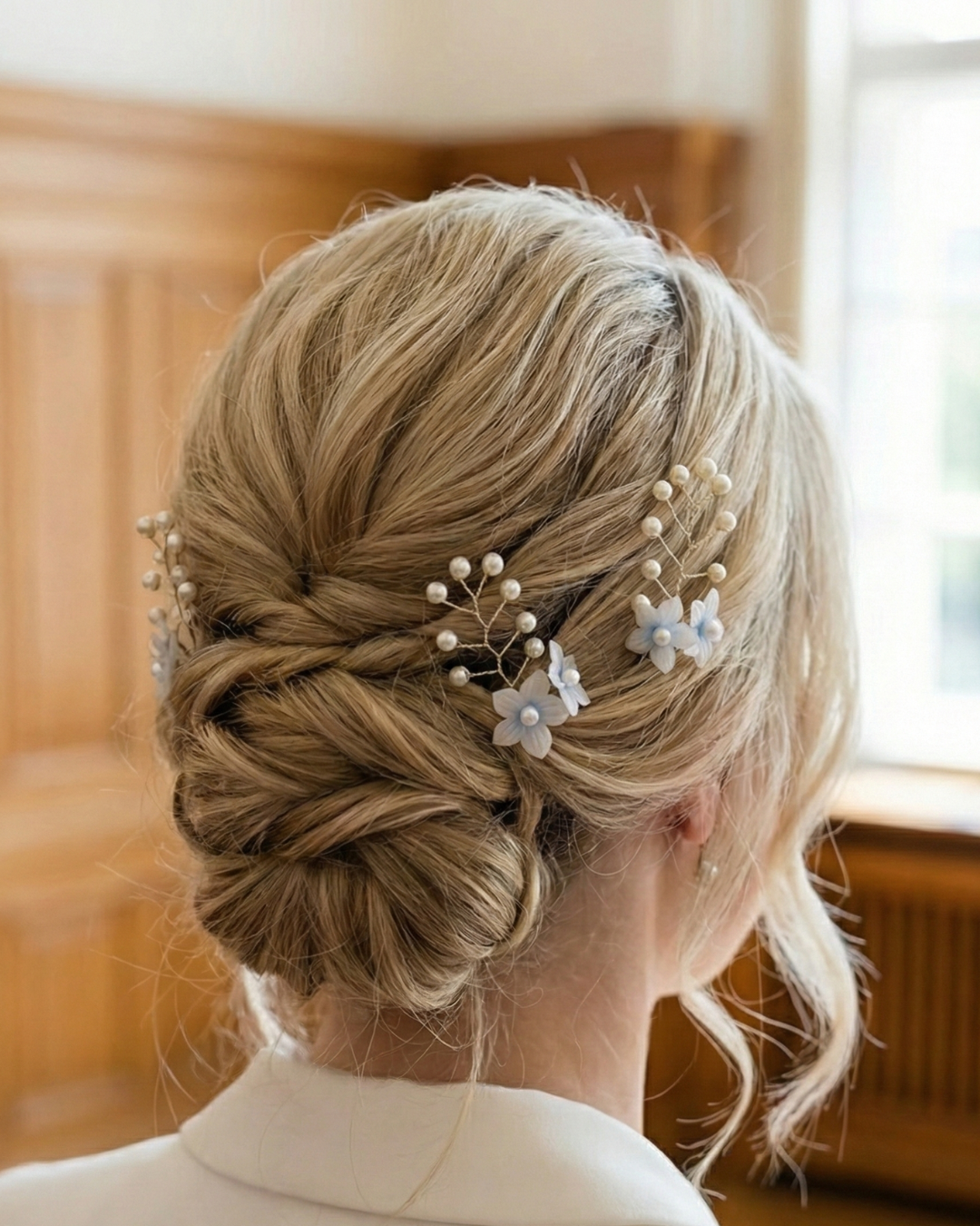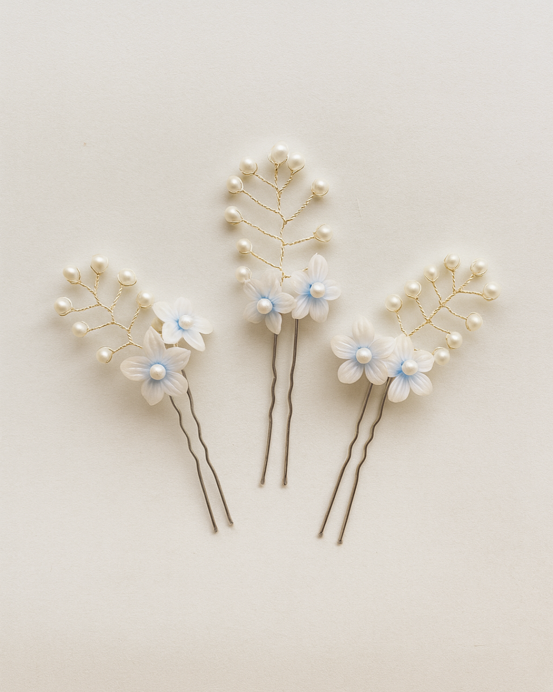 ¿Algo azul? Estas horquillas son la opción perfecta para incorporar esta tradición de forma delicada y moderna.